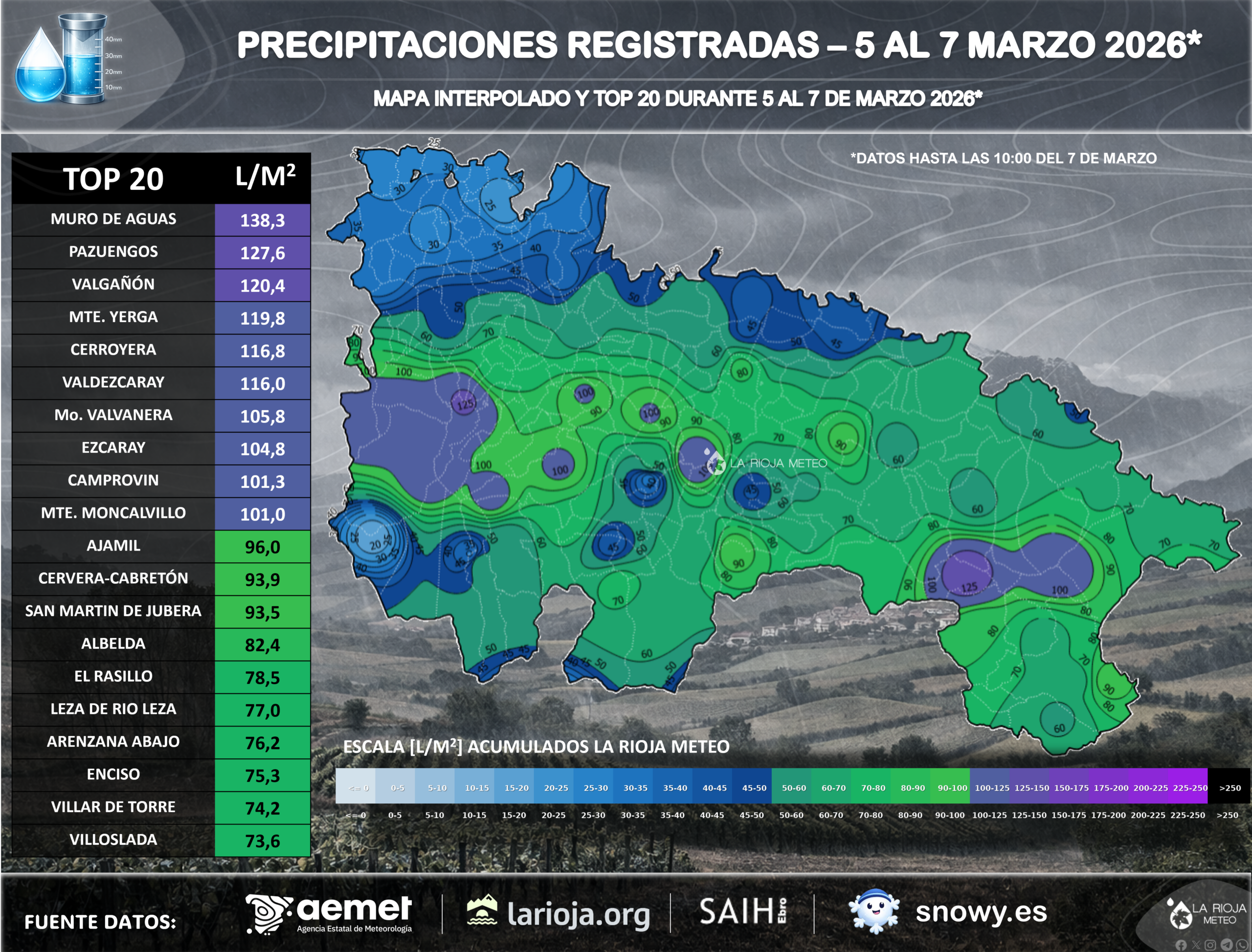 Regada importante en La Rioja: Una DANA deja más de 130 l/m² Entre el 5 y el 7 de marzo…