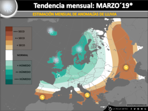 - Semana del 19 al 25 de febrero´18: todo apunta a un nuevo descenso generalizado de temperaturas con precipitaciones en la mayor parte de la península. Es probable que la nieve vuelva a cotas bajas de gran parte del país. Se estiman que las bajas presiones vuelvan a nuestra zona aunque su centro podría quedar más centrado en la propia península e incluso al oeste. Habrá que seguir la evolución, pero pinta a que la inestabilidad volvería de manera generalizada con temperaturas frías.