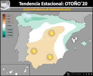 Como vemos, todo apunta a que los próximos 3 meses podríamos hablar de temperaturas más altas de lo normal en todo el territorio peninsular, excepto durante el mes de octubre que podría resultar más frío. Respecto a las precipitaciones, de cara a la segunda parte del otoño previsiblemente se concentrarán en la mitad oeste de la Península lo que de alguna forma apuntaría al restablecimiento de un circulación ciclónica mucho más meridional de la que llevamos viendo estos últimos meses.