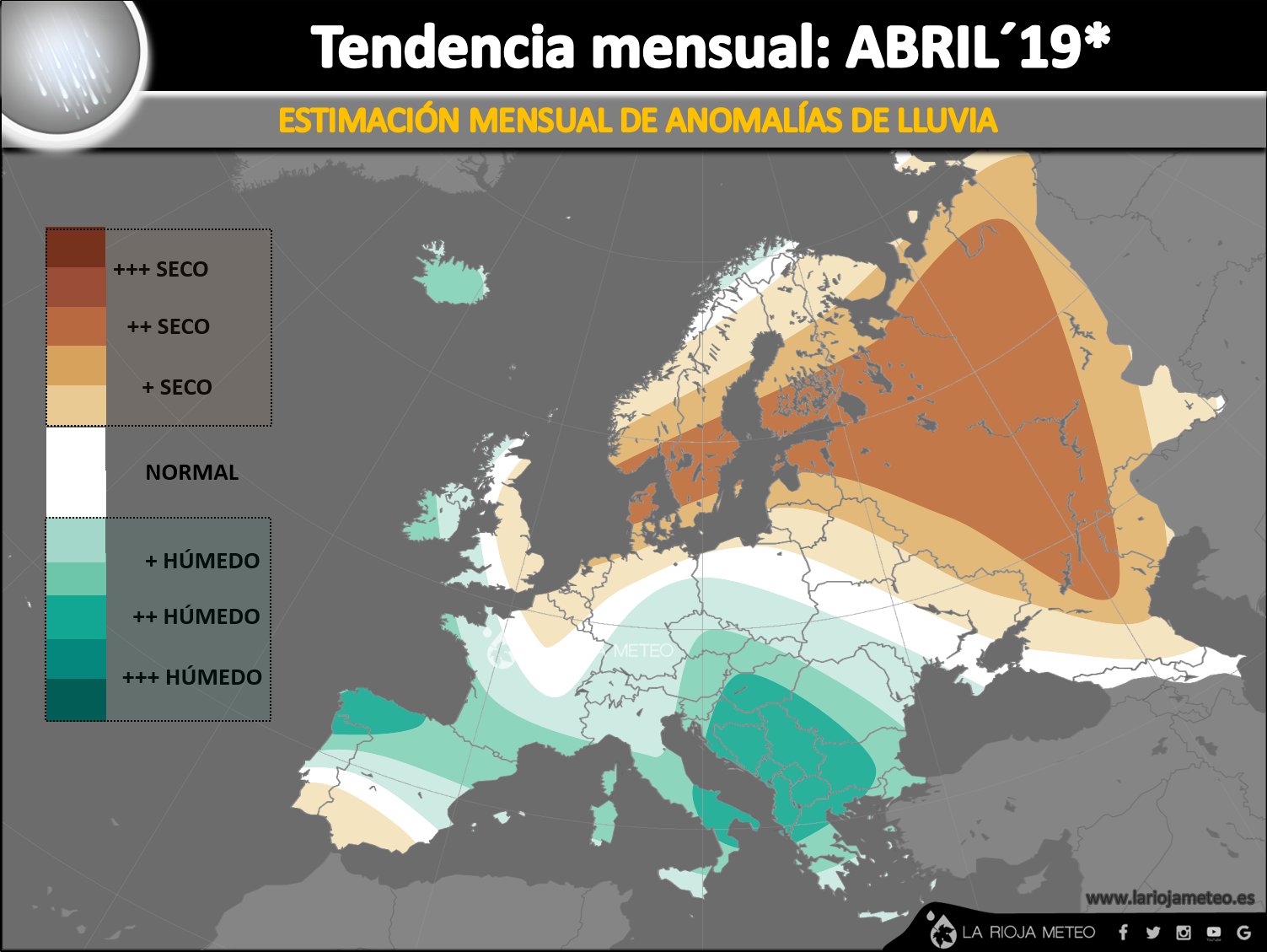 ANOMALÍAS PLUVIOMÉTRICAS PREVISTAS EN EUROPA PARA ABRIL´19