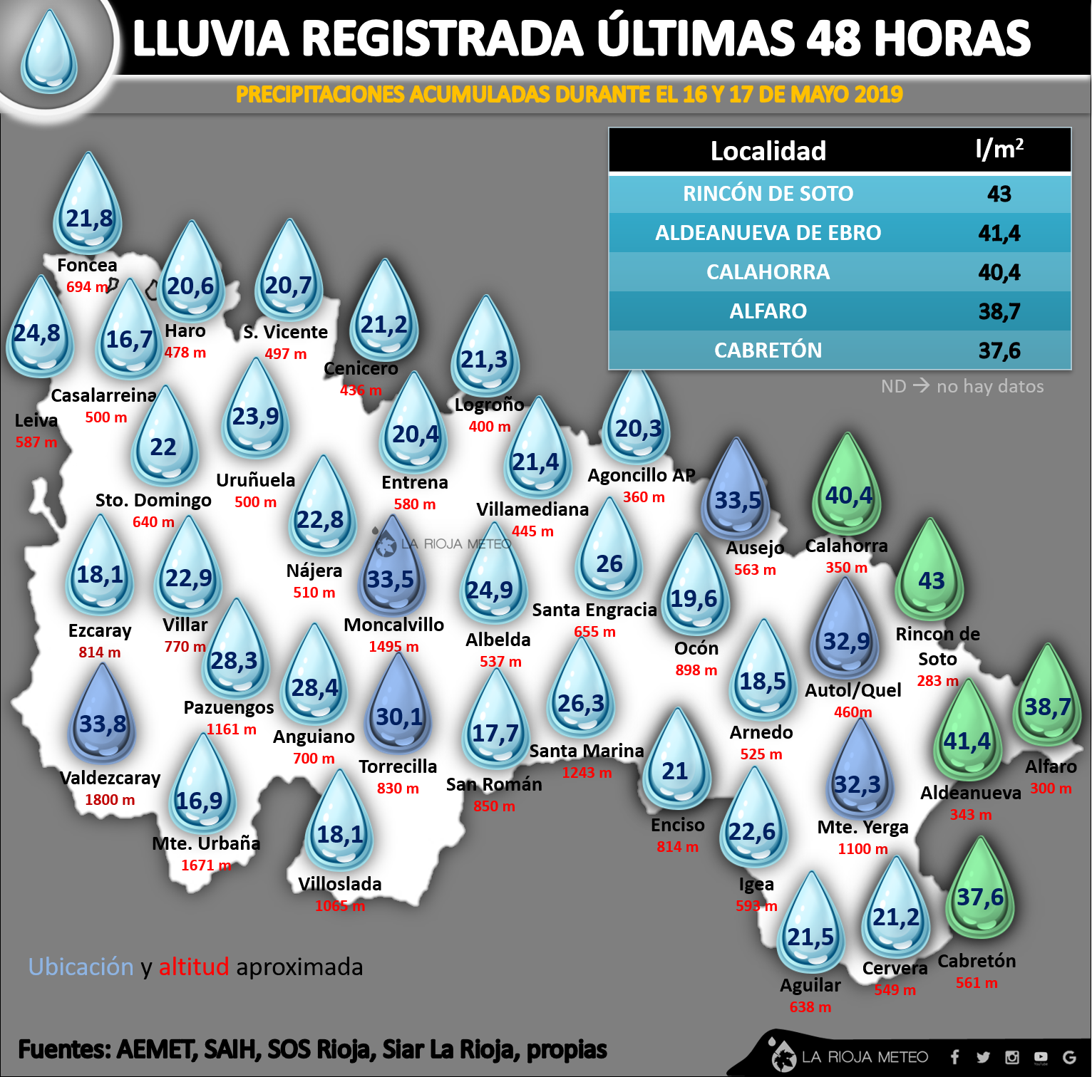 En cualquier caso, prácticamente ningún municipio de la geografia riojana bajo de los 20 litros, lo que la convierte en la regada generalizada más importante de lo que llevamos de primavera.