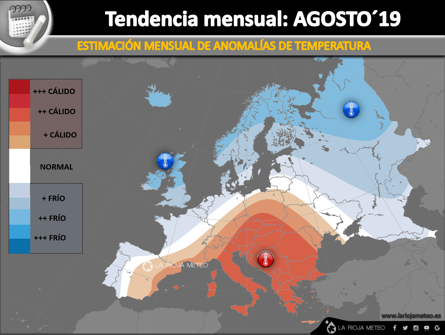 ANOMALÍAS TÉRMICAS PREVISTAS EN EUROPA EN AGOSTO´19