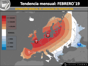 ANOMALÍAS TÉRMICAS PREVISTAS EN EUROPA EN FEBRERO´20