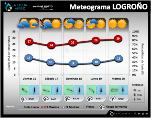 - Comarca de Santo Domingo (Cuenca baja del Oja/Tirón): las tormentas se mostraron menos generosas en estas subzonas riojanas, sin embargo se superaron los 30 litros en Leiva y los 25 litros en Santo Domingo.