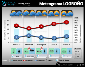Durante la próxima madrugada al lunes 13 las temperaturas tenderán a seguir subiendo, pero muy probablemente sigamos registrando bajo cero en todas las estaciones riojanas, a excepción de algunas de montaña, ya que la inversión térmica podría aumentar el contraste. Probablemente en la madrugada del próximo martes 14 digamos adiós a esta situación de frío, con la llegada de nubosidad que hará de manta térmica evitando estas importantes heladas por irradiación.