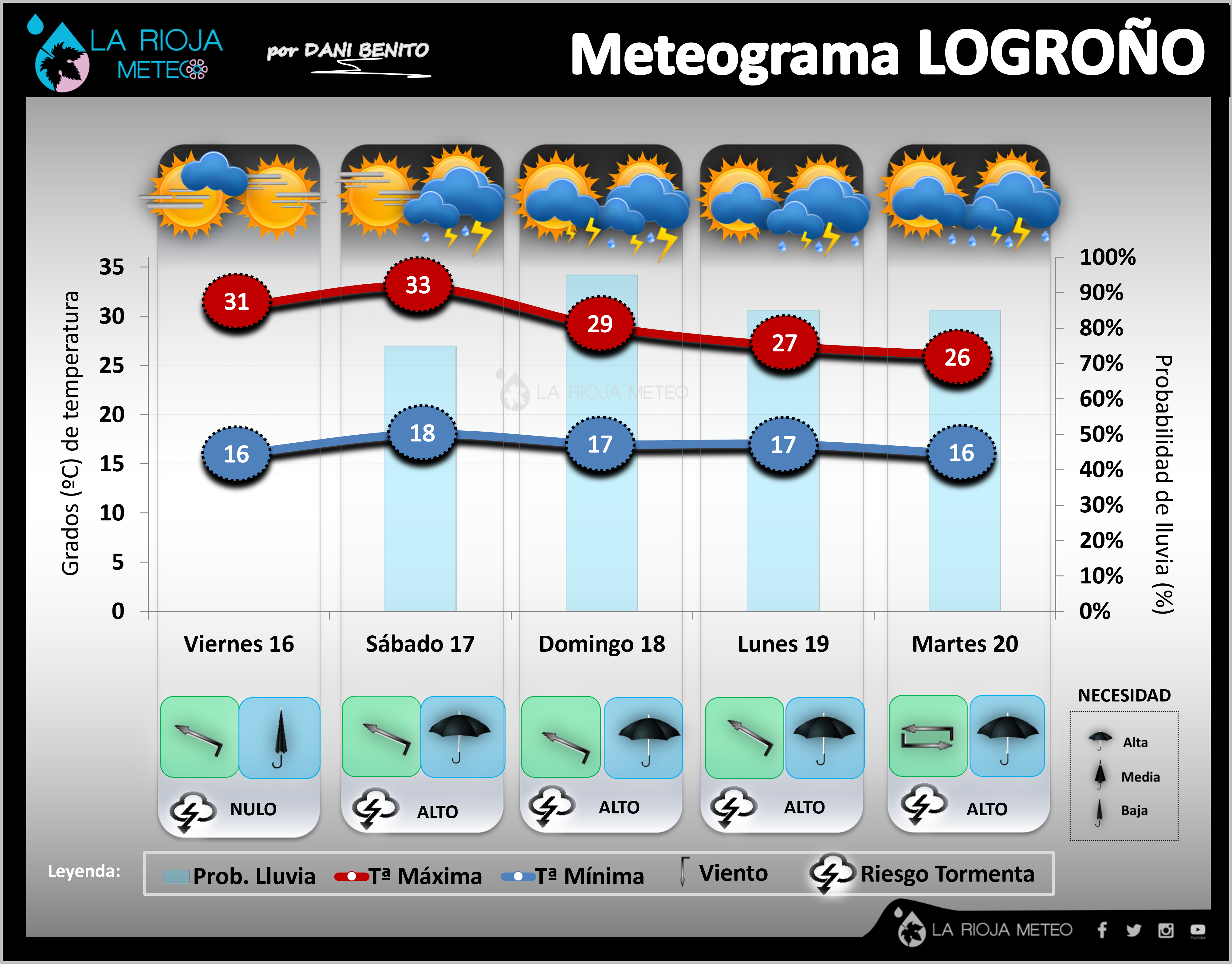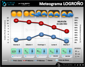 Como vemos en el meteograma para Logroño y la comarca de la ribera media, la tendencia inestable y algo menos cálida se extenderá, al menos, hasta el próximo martes 20 de junio. Lo iremos siguiendo.