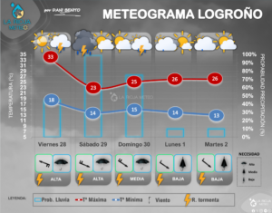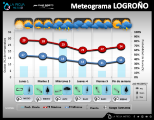 El perfil pluviométrico riojano durante el mes de julio estuvo marcado por la diferente distribución de las caprichosas tormentas, fenómenos que destacaron en dos periodos diferentes: el que aconteció alrededor de San Fermín y otro a finales de mes. En esta mensualidad encontramos a Rincón de Soto como el máximo exponente pluviométrico con más de 55 litros (algunas estaciones llegaron a registrar entre 70/80 litros), mientras que la localidad con estación que menos recogió fue la de Leiva, con apenas 1 litro. Las comarcas más regadas (que no mejor) fueron las de Alfaro, Arnedo, Calahorra y Los Cameros, principalmente. Las que menos, las comarcas de Logroño, Nájera, Santo Domingo y Ezcaray.