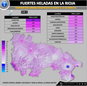 - Comarca de Cervera (cuenca del Alhama y Linares): Cabretón, Igea y Cervera de Rio Alhama rondaron 7 y 5 litros, respectivamente. Aguilar de rio Alhama no llegó a los 4 litros, mientras que cierra el clasificatorio Cornago con 0,5 litros.