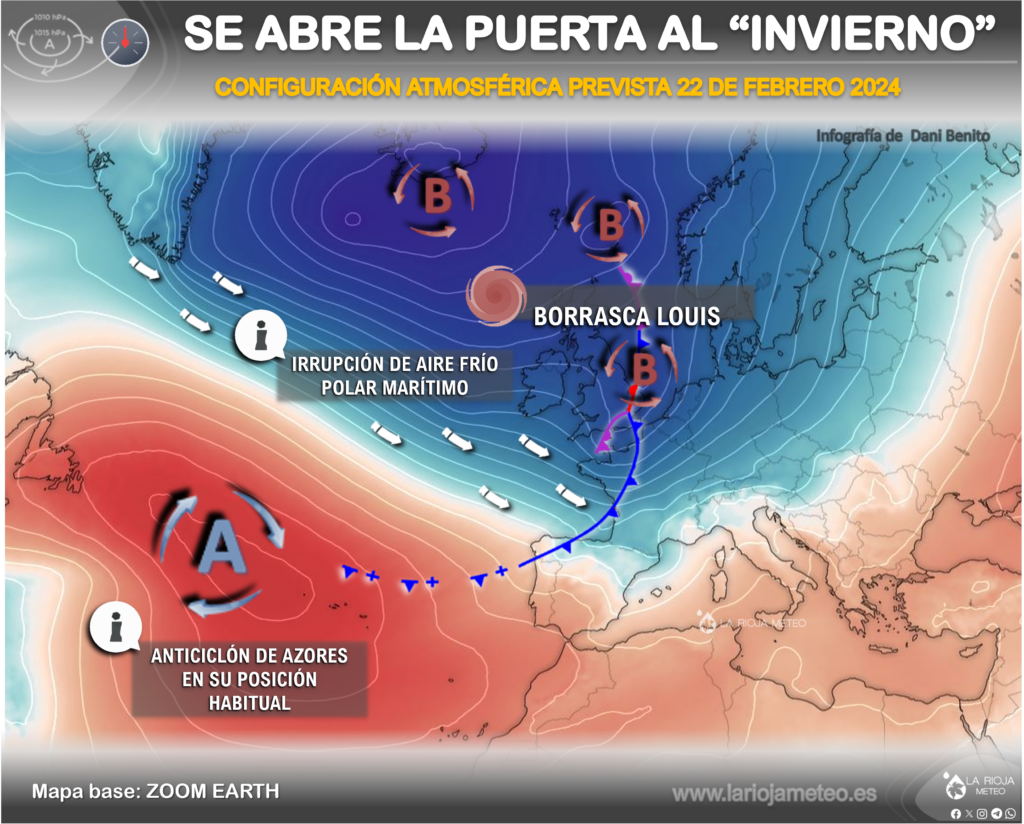 Tal y como estaba previsto, este jueves hemos vivido un importante cambio de tiempo en La Rioja por la llegada del frente que cuelga de la borrasca Louis, situada sobre el Reino Unido. Esta nueva configuración nos ha traído la irrupción a su vez de una masa de aire frío de tipo polar marítimo (humeda, fría e inestable). Lo que coloquialmente conocemos en meteo como NOROESTADA.