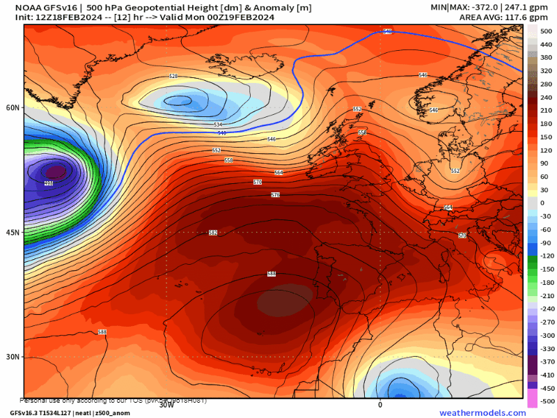 Poco a poco el tozudo anticiclón con una potente dorsal subtropical asociada, irá migrando hacia las Azores, esta nueva configuración dejará paso a la llegada de una potente vaguada desde el Atlántico septentrional. Entre la borrasca y el anticiclón generarán un intenso pasillo de vientos del Oeste/NorOeste sobre la Península Ibérica a partir del jueves, lo que cambiará de golpe el tiempo que hemos vivido hasta ahora. La lluvia, el fuerte viento, el descenso de las temperaturas y la cota de nieve incluso por debajo de los 1000 metros serán protagonistas del tiempo en La Rioja en la segunda mitad de la semana.