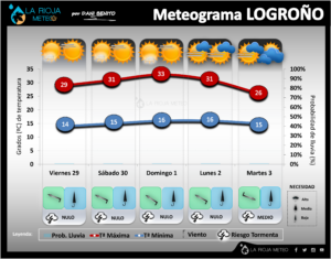 Aunque ya desde la tarde del viernes 5 de abril notaremos que los cielos van enturbiándose, será entre la tarde del sábado 6 y la tarde del domingo 7 cuando los parámetros toquen techo en La Rioja: