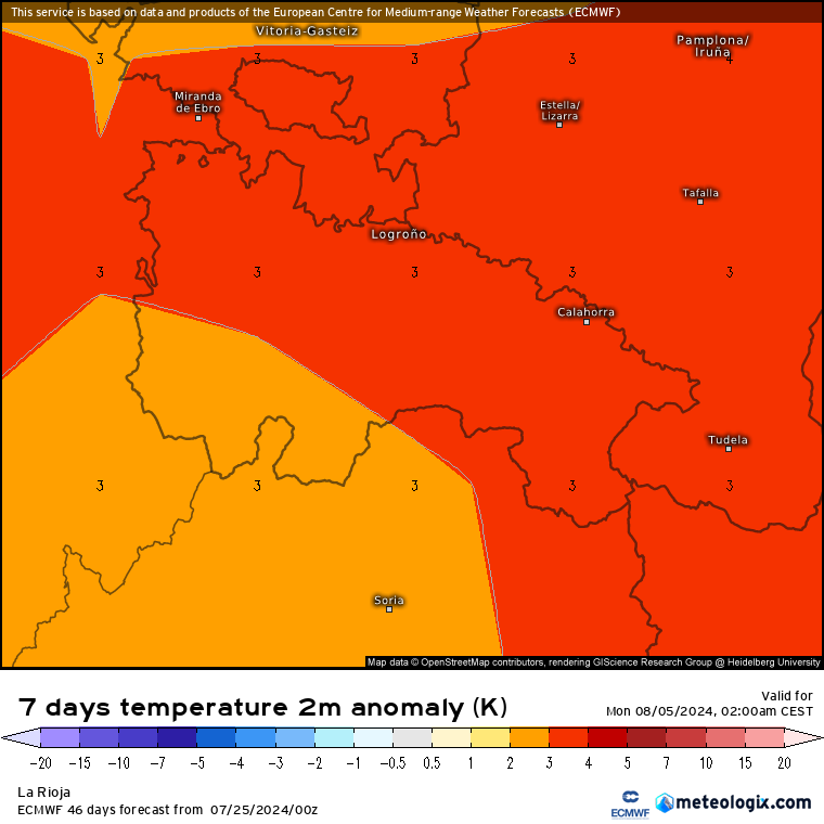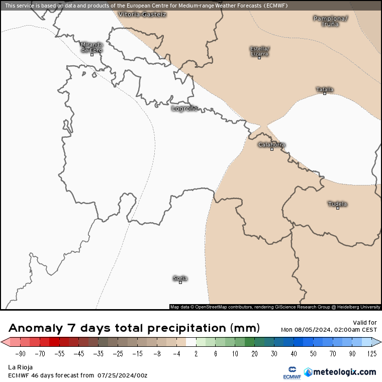 Pese a que la semana comenzará muy cálida, con anomalías de hasta +10ºC, la normalización prevista en la segunda mitad de semana tenderá a bajar las medias hasta los +3/+4ºC durante los próximos 7 días. Respecto a las precipitaciones, las tormentas de principios de semana, arrojarán unas medias próximas a lo normal para la época, salvo un ligero déficit en el extremo oriental.