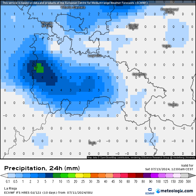 Apenas nos enteraremos del paso del frente durante el viernes, sobre todo en la ribera, donde no esperamos ni gota (lloviznas como mucho y por sorpresa circunstancial, sobre todo en ribera alta). Sin embargo, la retención si podría ser más eficiente en la Ibérica occidental y dejarnos entre 2/4 litros en áreas de La Demanda, Cebollera y Camero Nuevo). Lo podemos intuir en las estimaciones de los dos modelos de referencia, europeo (izda) y americano (dcha).
