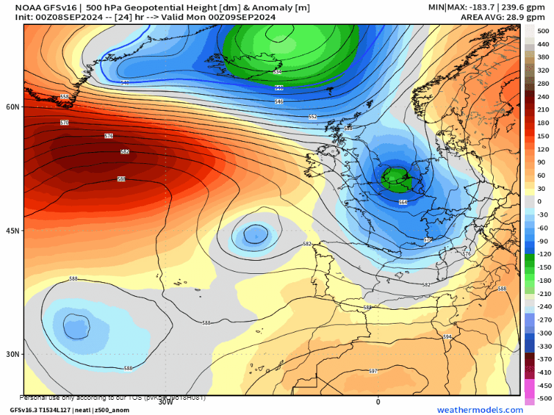 El anticiclón de las Azores seguirá posicionado al Oeste de la Península Ibérica, pero la aparición de altas presiones sobre Groenlandia, facilitará su verticalización al norte, mientras que una vaguada irá descendiendo de latitud, apuntando a nortes en La Rioja. Pese a que no nos afectará de lleno, en torno al miércoles-noche un frente frío llegará hasta las costas del cantábrico, penetrando en mayor o menor medida al resto del tercio norte durante el jueves.