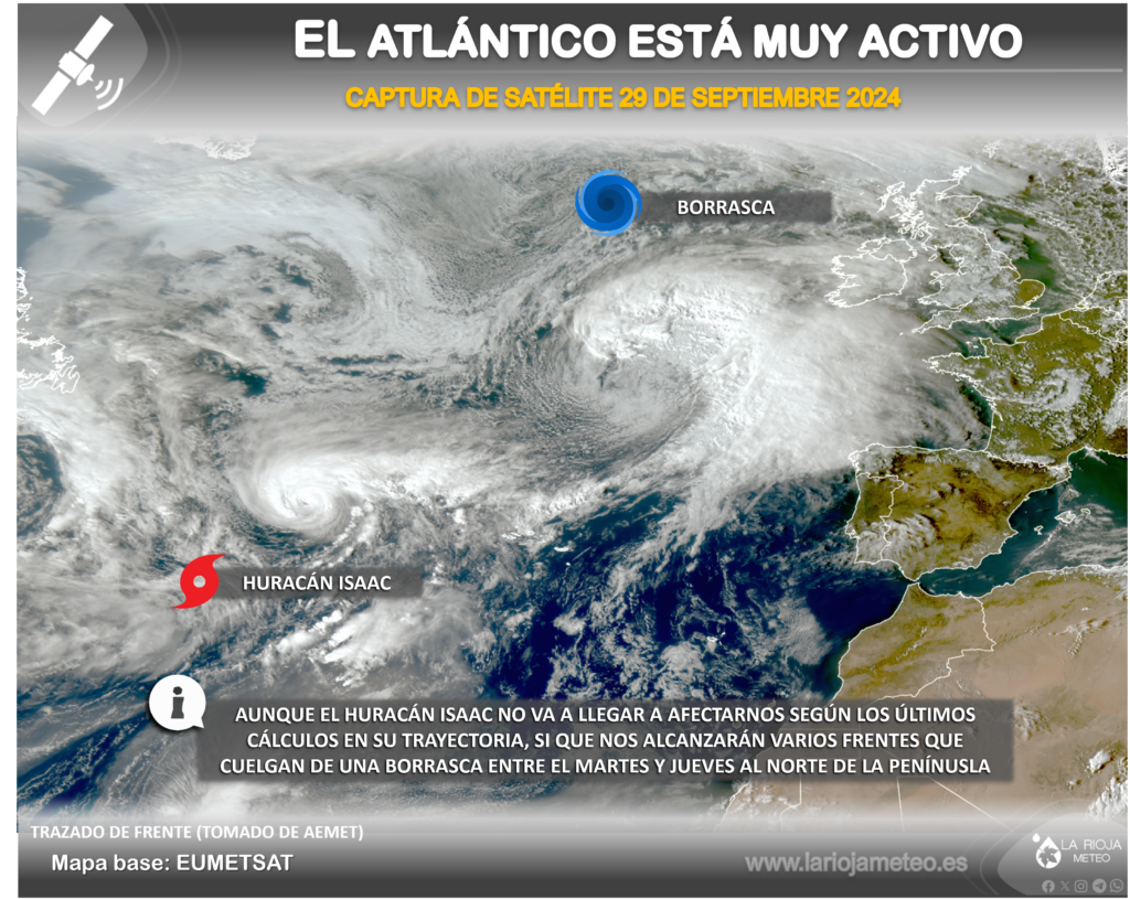 La imagen que mostraba el atlántico este domingo 29 de septiembre de 2024 es espectacular, con un sistema tropical «tan cerca» de la Penínusla Ibérica.