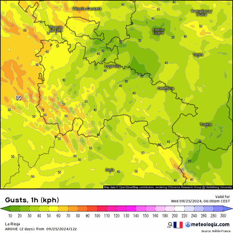 Ojo a las rachas fuertes de viento que esperamos desde la tarde de este mismo miércoles y hasta ultimas horas del jueves. Podrían superar los 100 km/h en las cimas de la Ibérica y tener vientos sostenidos de 70/80 km/h en cotas más bajas. AEMET nos mantiene en aviso amarillo hasta el jueves (sólo a la Ibérica).