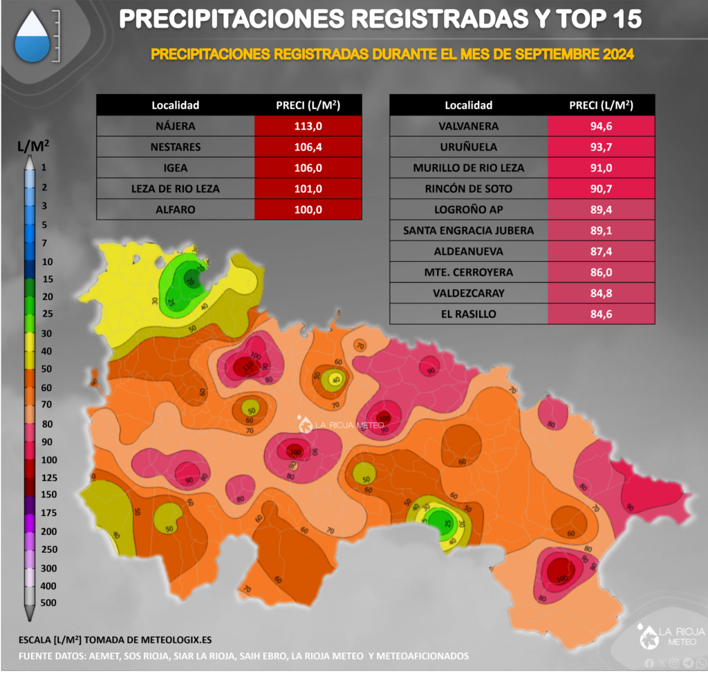 Septiembre´24 muy variable el que hemos tenido en La Rioja, con 2 momentos de precipitaciones reseñables: