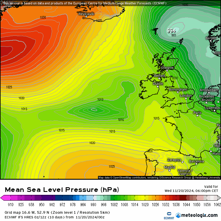 Pese a seguir bajo los efectos de una dorsal anticiclónica, ésta cederá durante unas 24/36 horas hacia el sur ante el fuerte, aunque breve, empuje de la borrasca Caetano, situación rápida derivada de un proceso de ciclogénesis explosiva mediante el cual una pequeña onda atlántica de 1005 mb, pasará a ser una borrasca de 980 mb (en menos de 24 horas, 19 horas del miércoles a 19 horas del jueves 21).