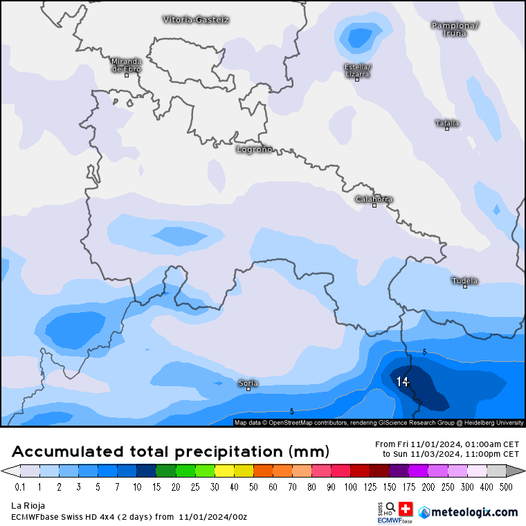 El sábado por la tarde, además llegará un pequeño brazo relativamente húmedo hasta la región, aumentando la nubosidad y dejando algunos chubascos débiles, más probables en las sierras de la mitad oriental (Alcarama, Préjano, Yerga, La Hez….), sin descartar que alguno se escape de manera esporádica y ocasional al resto de la región.