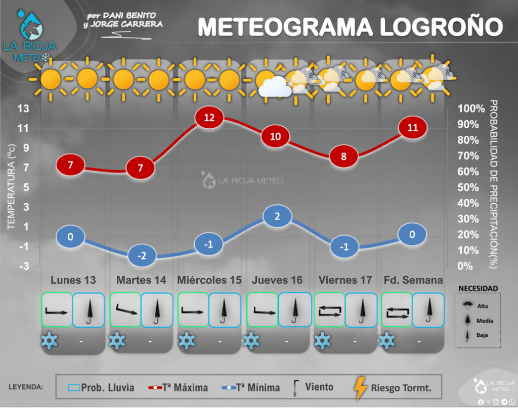 Echamos un vistazo al meteograma de tendencia para la comarca de Logroño y en general la ribera riojana.