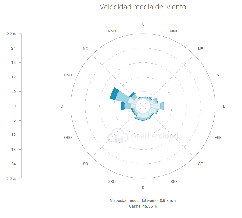 Durante este mes observamos una alta prevalencia de vientos del Oeste y NorOeste, que como hemos dicho, favoreció la llegada de frentes que fueron bastante efectivos en toda la región. Posteriormente la rolada a sures y Estes a mediados nos dejaron nieblas y heladas, para volver a una situación de Oestes/NorOEstes en la recta final del mes.