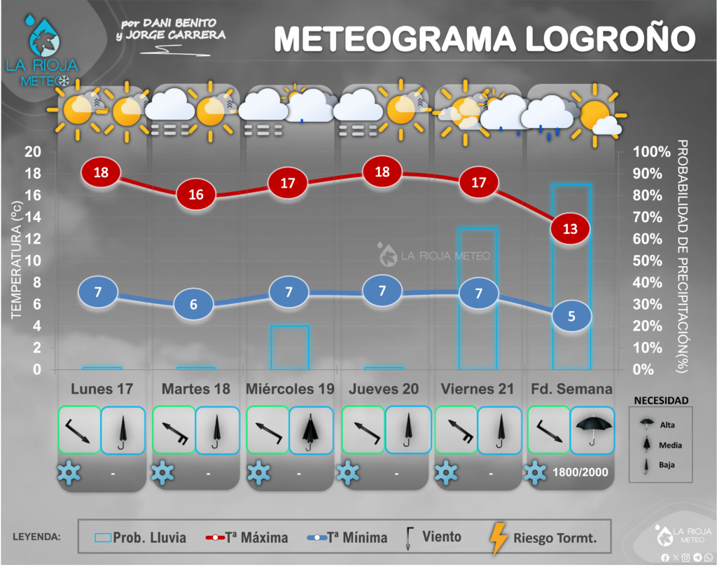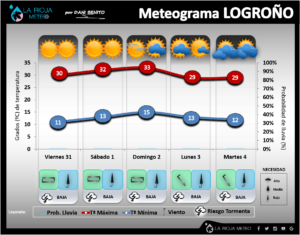 Echamos un vistazo al meteograma de tendencia para Logroño y la comarca de la ribera media.