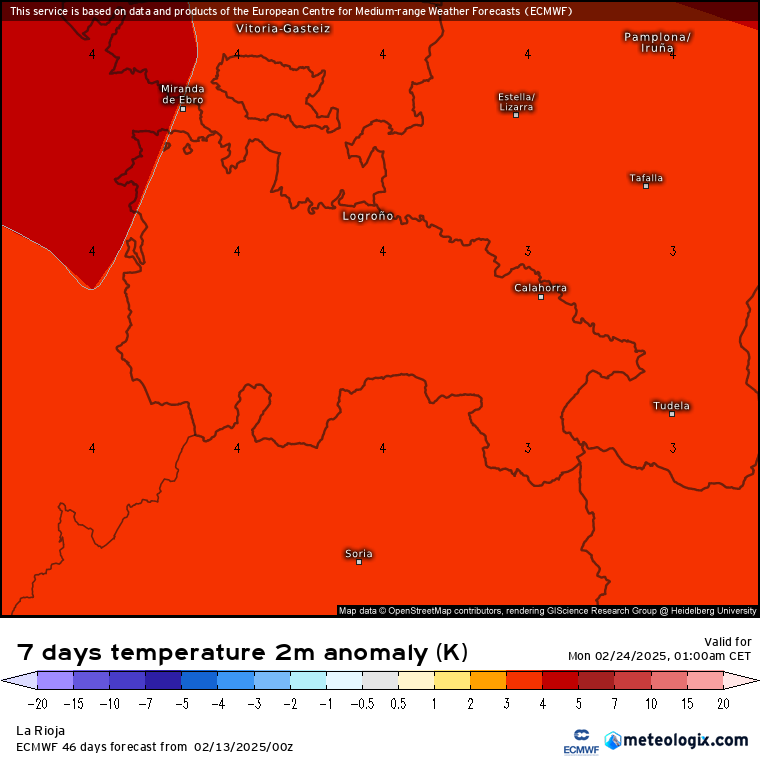 Pese a que el paso de estas bolsas de aire frío en altura tendrán cierto reflejo en forma de subida prefrontal y bajada postfrontal, en general, las temperaturas se mantendrán muy por encima de lo que es lo normal para la época en La Rioja. Hablamos de temperaturas de media que oscilarán entre los +3/+5ºC. Mucho calor para la época.