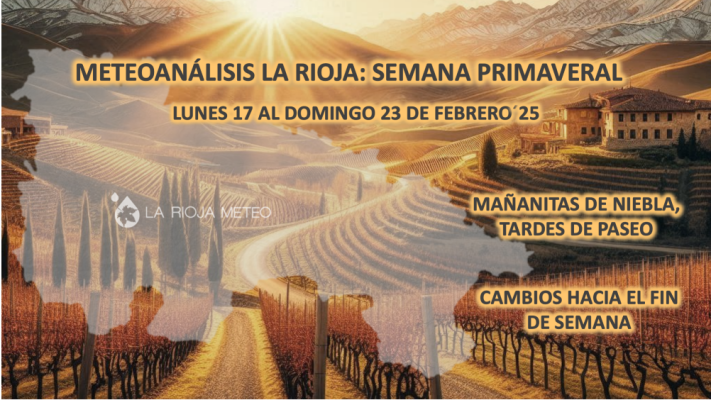 Pese a éstos movimientos a nivel atmosférico, la situación en La Rioja será bastante similar al menos hasta el viernes. Será una semana propia del refrán «mañanitas de niebla, tardes de paseo», ya que exceptuando el lunes, desde el martes al viernes serán muy probables a lo largo del eje del Ebro, lo que condicionará unas mínimas bastante amortiguadas por el efecto manta de la niebla y unas máximas similares a las de este domingo, una vez que levanten.