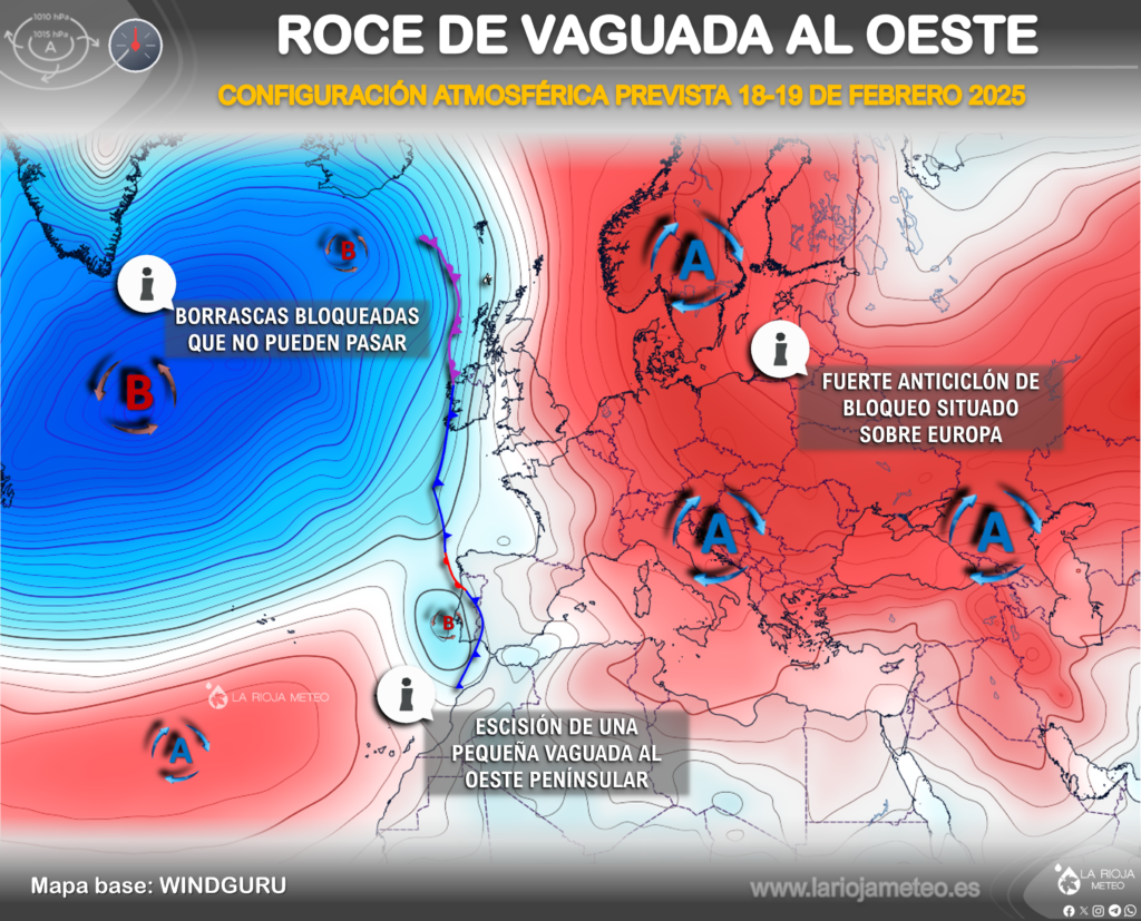 Las únicas novedades las encontraremos en dos vaguadas que se desgajarán de la borrasca atlántica madre y que irán a parar presumiblemente a diferentes puntos de la Península Ibérica, sin embargo la primera de ellas, no parece que vaya a afectar de manera significativa a La Rioja: