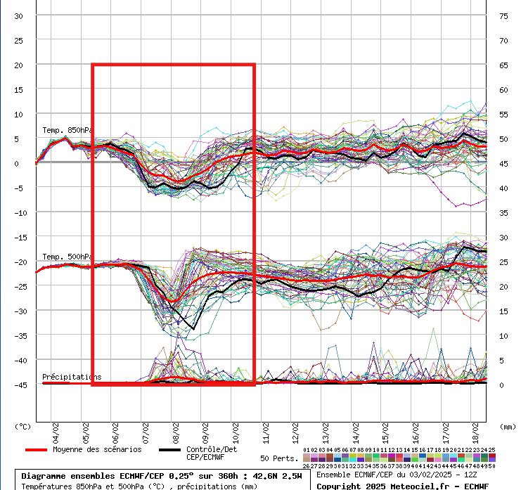 Como puedes ver, existen diferencias significativas entre los escenarios (dispersión), lo que significa que es necesario esperar más tiempo para poder afinar la predicción con mayor precisión. Lo mejor es estar atentos a las actualizaciones que iremos publicando en nuestras redes sociales para seguir la evolución de este episodio invernal que en principio, traerá frío pero seco.