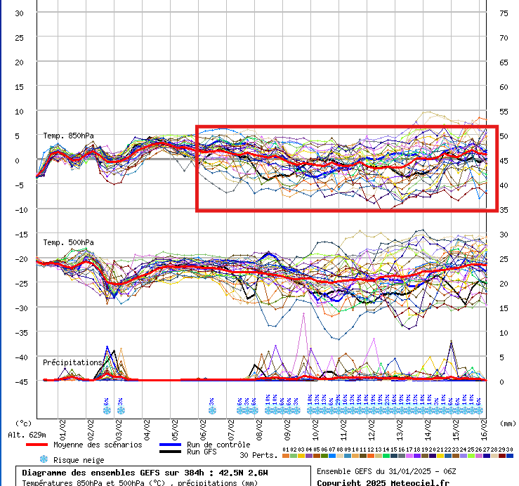 La dispersión de los ensembles refleja gran incertidumbre, aunque insisten en el establecimiento de un anticliclón sobre Escandinavia. Su persistencia bloquearía el paso de borrascas atlánticas y canalizaría aire frío continental hacia el centro y sur de Europa, lo que podría traducirse en un descenso térmico notable.