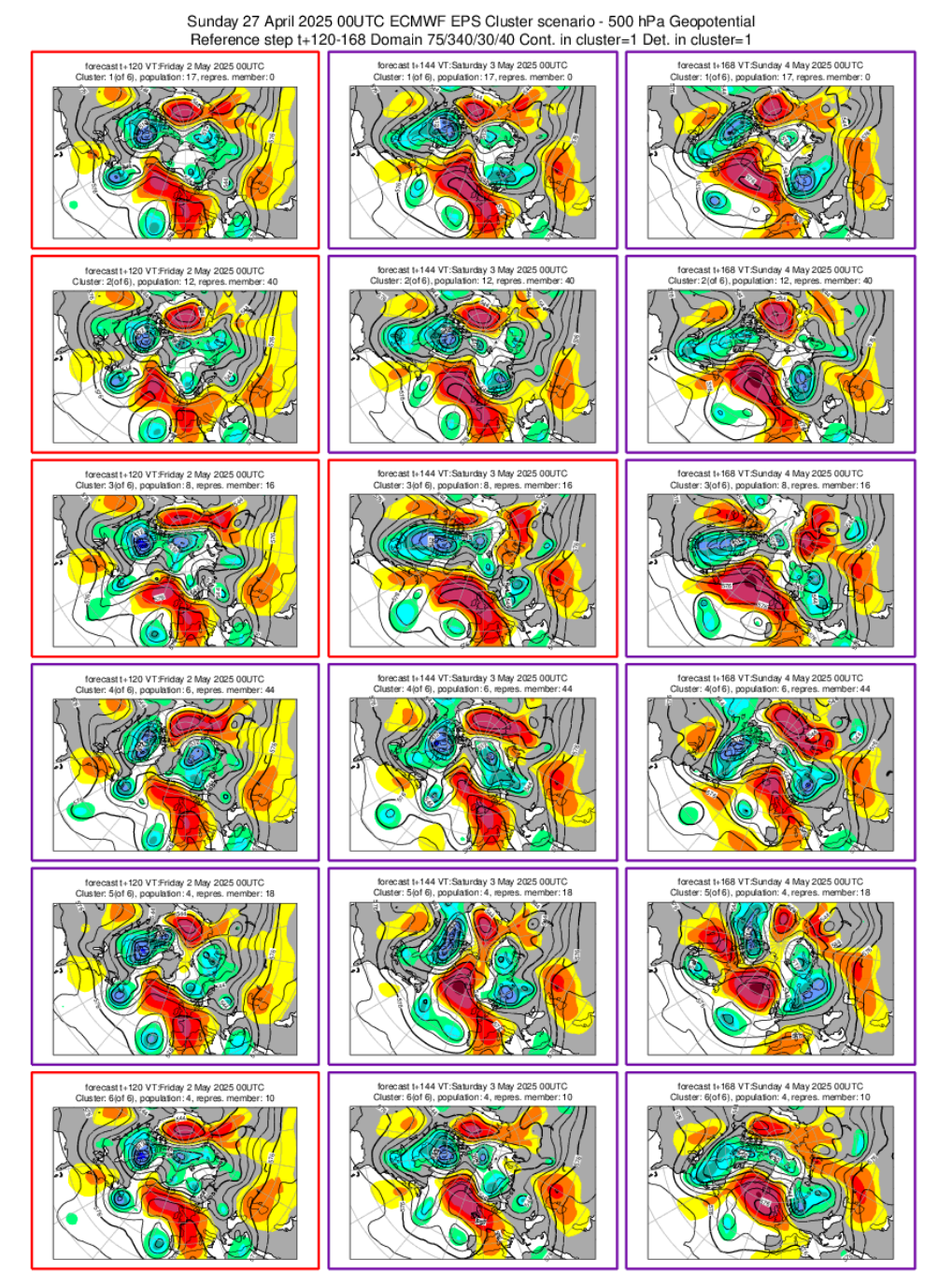 Como siempre, para analizar el escenario con mayor fiabilidad, hemos recurrido a los clústeres de escenarios del ECMWF, que nos muestran cómo se reparten las diferentes posibilidades.