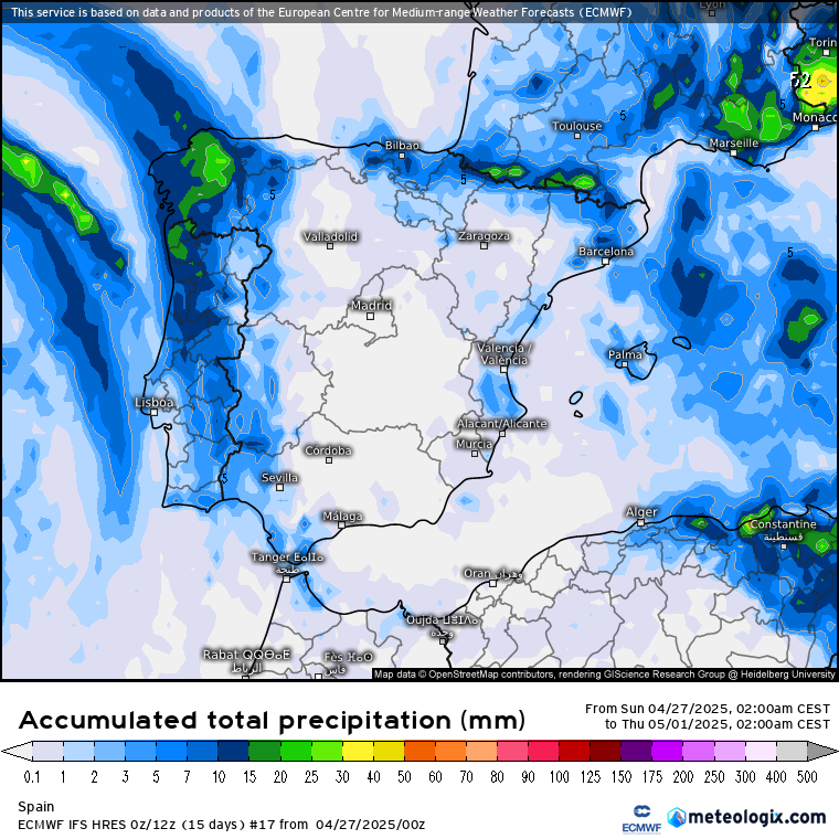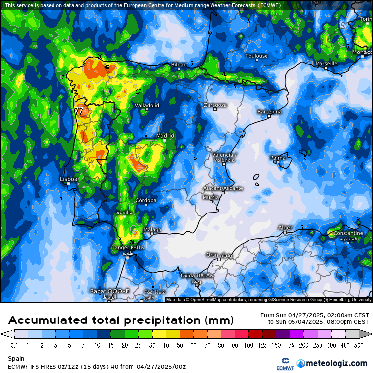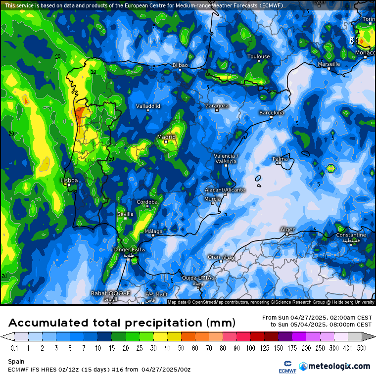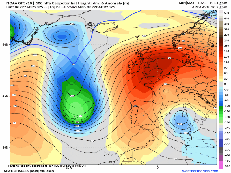 La dinámica atmosférica que se generará con esta nueva situación sinóptica, favorecerá una advección de aire cálido subtropical (desde el sur) hacia la Península Ibérica, con una subida clara de las temperaturas al menos, hasta el fin de semana. Sin embargo, el movimiento posterior del aire frío aislado en el atlántico (DANA), determinará en mayor o menor medida el tiempo que podamos tener durante el Puente de Mayo, con un aumento claro de la humedad. Todo dependerá de lo que empuje la DANA: