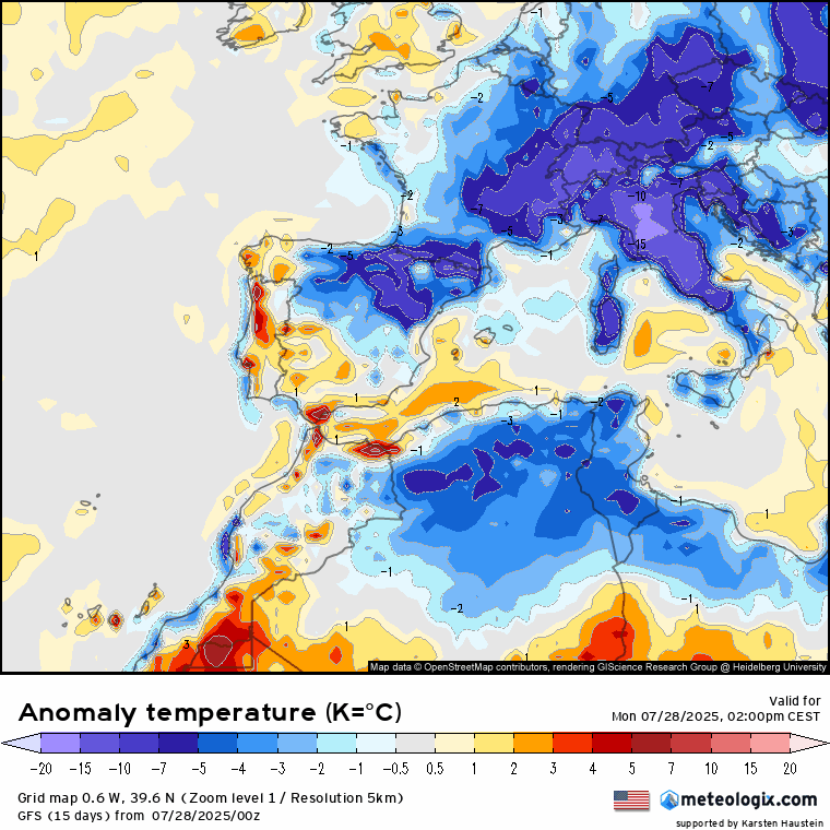 Esta situación seguirá favoreciendo, que pese a los ascenso térmicos mencionados, sigamos en líneas generales con marcadas anomalías térmicas (entre 4/7ºC por debajo de lo normal) prácticamente toda la semana en La Rioja y en el norte y Este de la Península Ibérica.