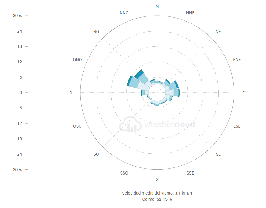 Respecto a los vientos dominantes en un punto de la ribera durante la primera quincena de Agosto destacan los Estes y SurEstes, mientras que en la segunda mitad, destacan los NorOestes.