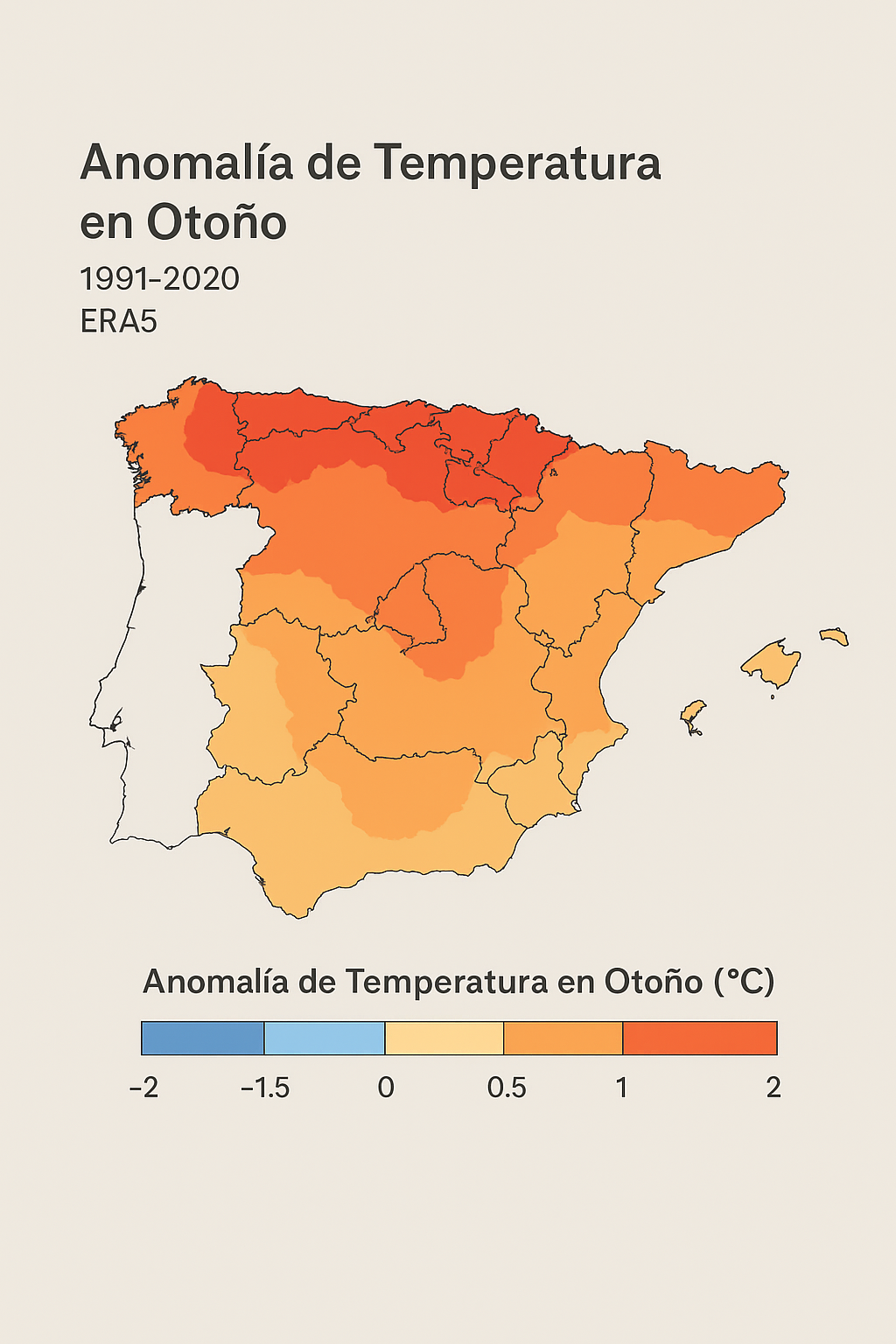 Y la tendencia continúa: las previsiones de otoño 2025 apuntan a nuevas anomalías térmicas positivas en toda la mitad norte peninsular, incluida La Rioja.