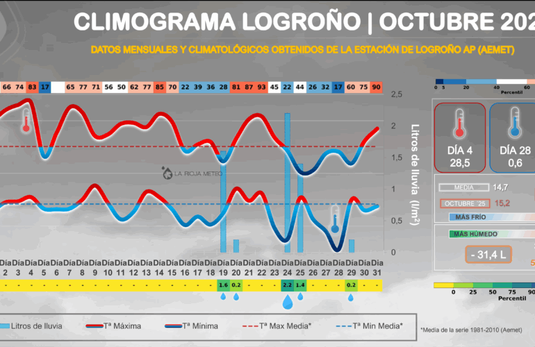 ¿CÓMO HA SIDO CLIMATOLÓGICAMENTE EL MES DE OCTUBRE´25 EN LOGROÑO?