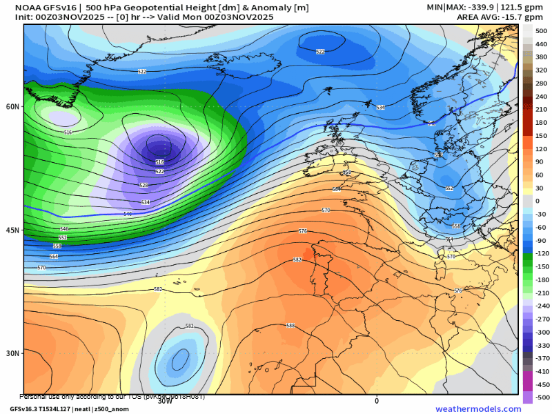 Las precipitaciones continuarían durante al menos la primera mitad del jueves, con chubascos generalizados débiles o localmente moderados intermitentes. Aunque con algunas horas de tregua, entre las ultimas horas del jueves y primeras del viernes, un nuevo frente se aproximaría en la jornada del viernes, extendiendo su acción hasta la primera mitad del sábado. Notaremos un fuerte descenso térmico entre el jueves y el sábado, lo que favorecerá que la cota de nieve pueda bajar hasta el entorno de los 1600/1800 metros.