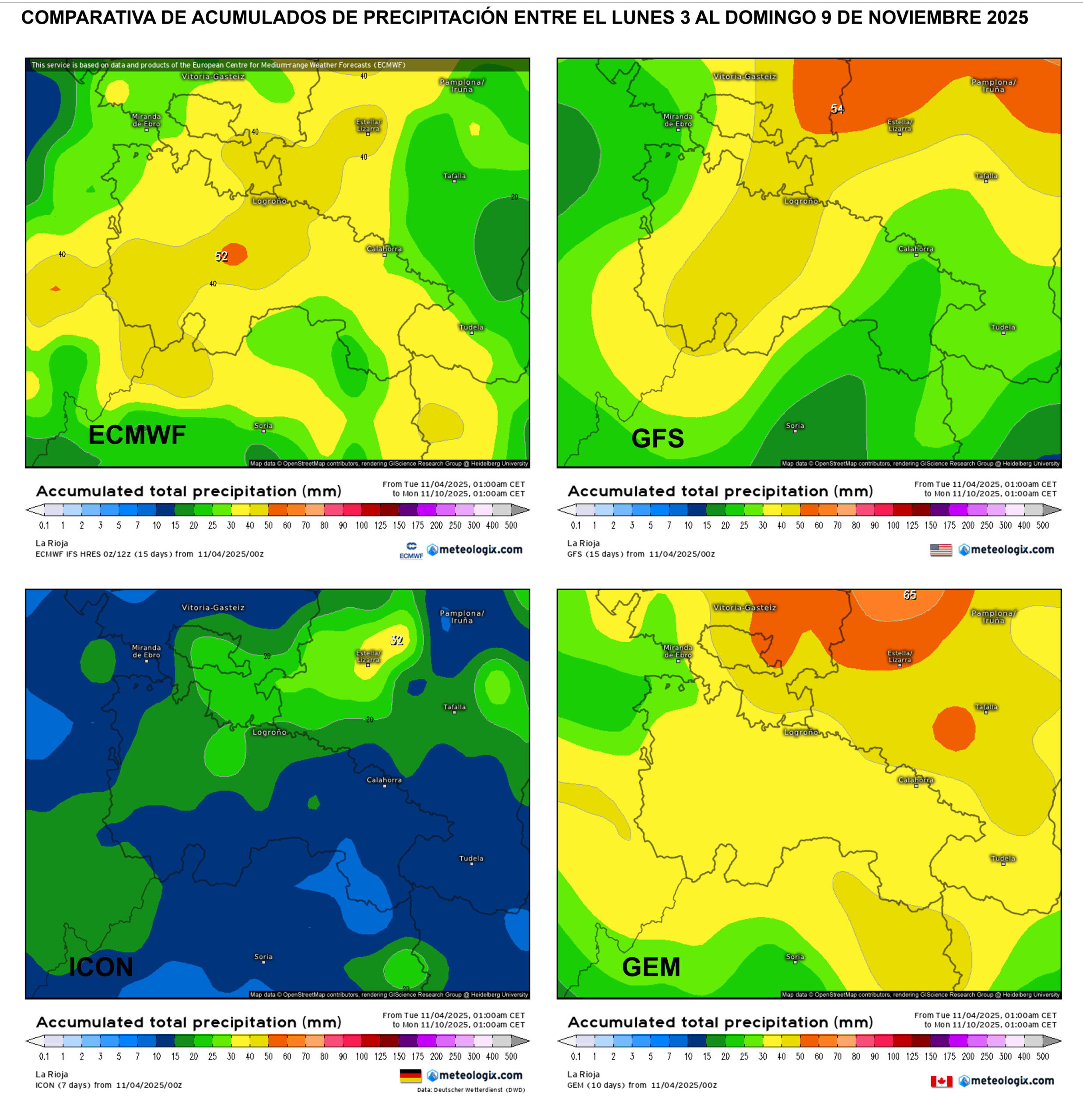 En general y como viene siendo costumbre, los modelos difieren en las cantidades y ubicación de las intensidades máximas, pero en esta ocasión las precipitaciones también podrían llegar al valle de manera algo más eficiente. Como vemos, todos los modelos salvo el alemán ICON atisban precipitaciones acumuladas bastante significativas con el paso de estas dos vaguadas, que podrían superar los 25/30 litros de manera bastante repartida. Es pronto para afinar ubicación e intensidades, ya que el efecto foehn seguirá presente. No obstante, la potencia de las vaguadas podrían minimizarlo en esta ocasión y romper parcialmente con el secano en la ribera.