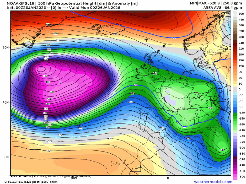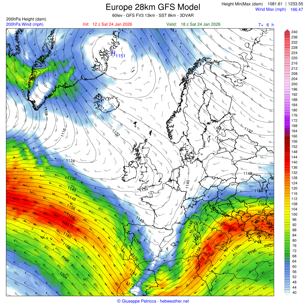 Y es que ese bloqueo anticiclónico sobre Groenlandia, favorece que la «carretera de borrascas» o Jet Stream, circule muy bajo de latitud, apuntando directamente a la Península Ibérica, por lo que la inestabilidad va a ser muy marcada durante los próximos 7 días.