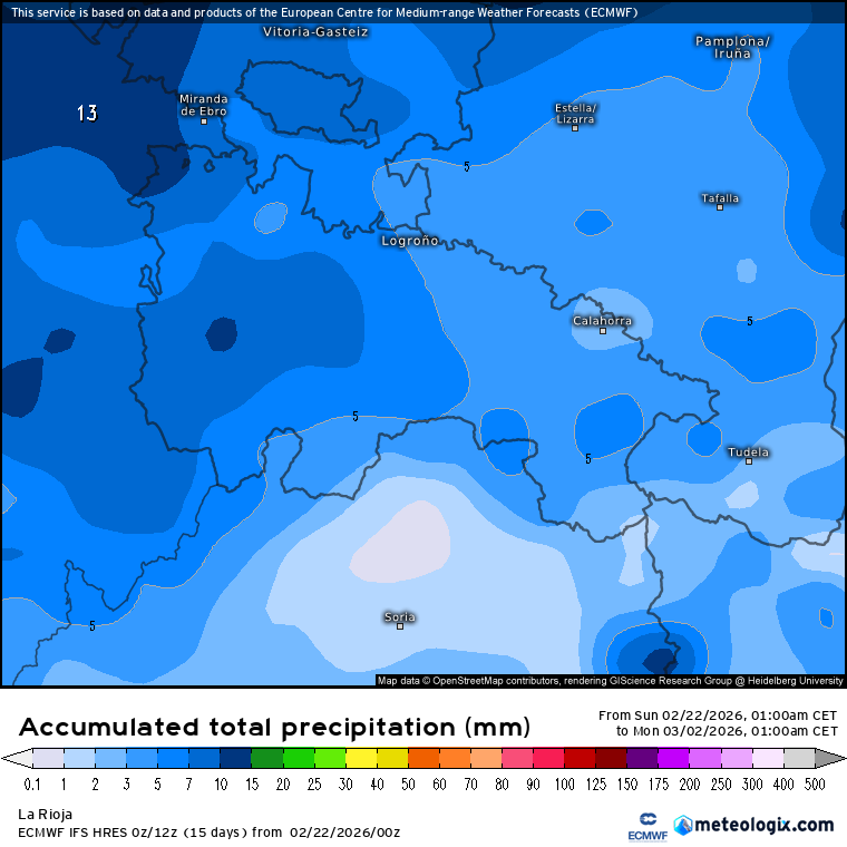Habrá que esperar al viernes 27 y quizás domingo 1 de marzo para ver atravesar sendos frentes a La Rioja, aunque la incertidumbre es máxima para ambos días, y habrá que ir siguiendo la evolución.