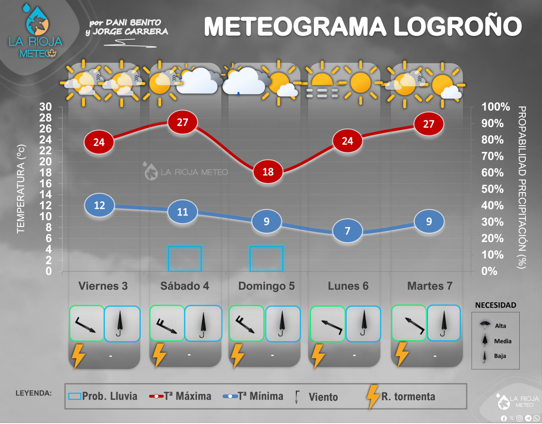 La primera DANA que surgirá de la Borrasca Regina, en su ascenso hacia la Península, podría dejarnos en La Rioja una inestabilidad relativa: