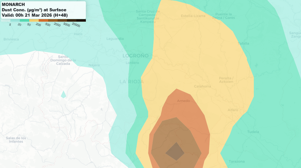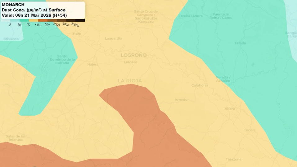 La presencia de polvo sahariano será uno de los elementos más característicos del tiempo en La Rioja durante este episodio. En este caso, la intrusión de aire africano será mucho más contenida que la que tuvimos a comienzos de marzo, aunque suficiente para dejar cielos algo velados.
