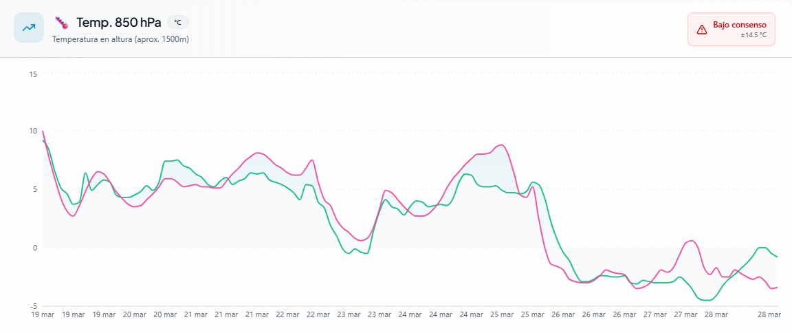 Más allá, de cara al último fin de semana de marzo, algunos escenarios empiezan a sugerir un posible cambio de tendencia, con temperaturas que podrían volver a descender. Sin embargo, estamos en primavera, y como estamos viendo estos días, las previsiones pueden cambiar con bastante rapidez en apenas 3-4 días, por lo que habrá que seguir la evolución con atención y no dar nada por sentado. Analizamos las tendencias con nuestra herramienta multimodelo de SNOWY.ES.