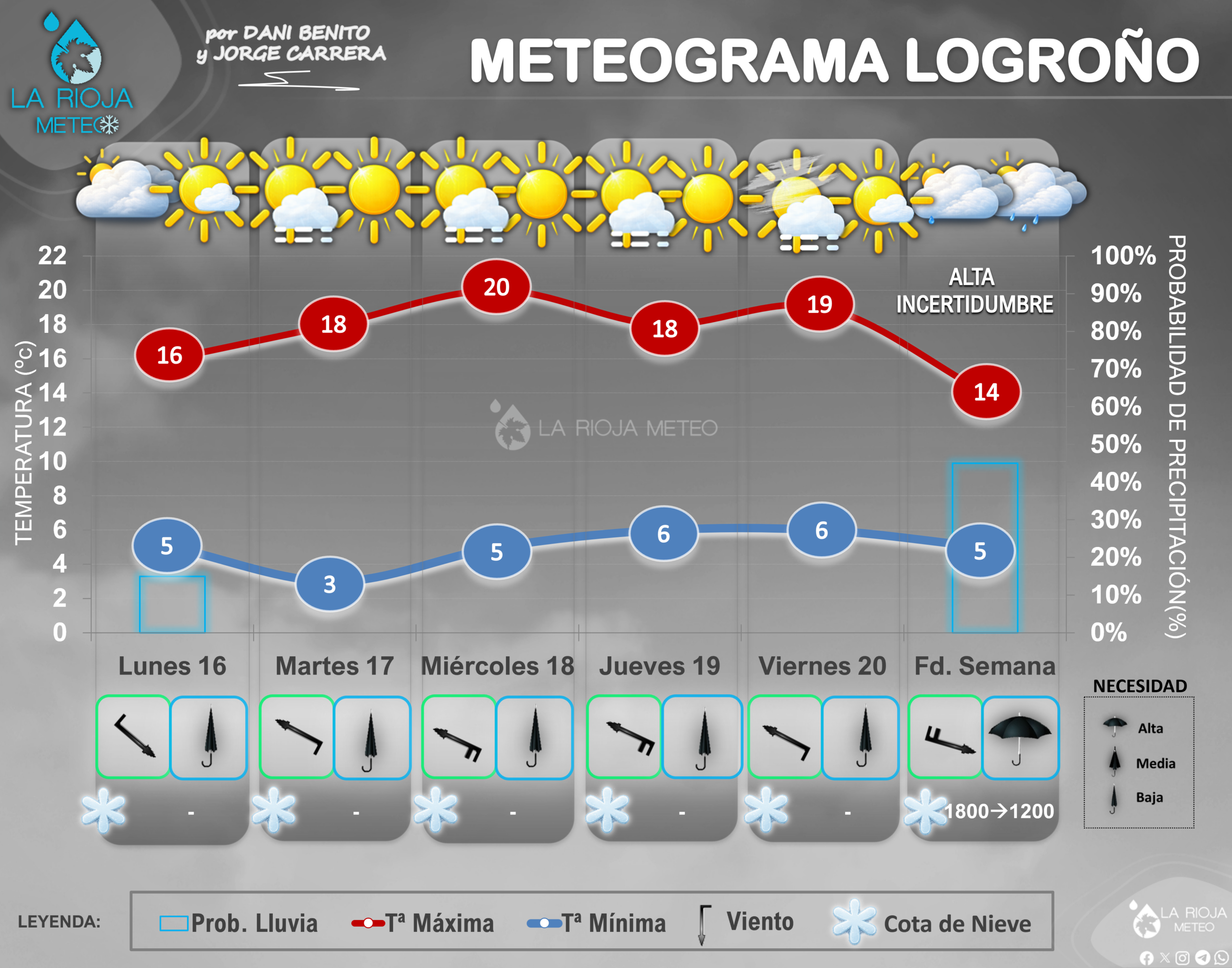 - 16 °C el lunes