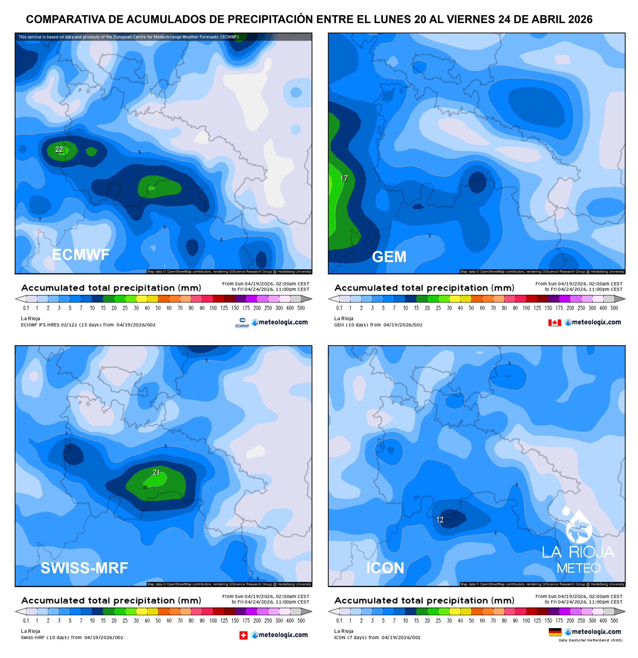 (Logroño, Calahorra, Alfaro, Haro) - Valores cercanos a 22–26 ºC en la Ibérica
