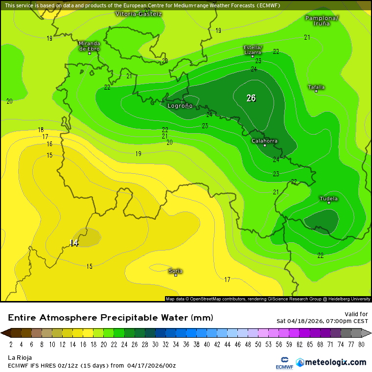 Además, el contenido de agua precipitable es significativo, lo que podría traducirse en: