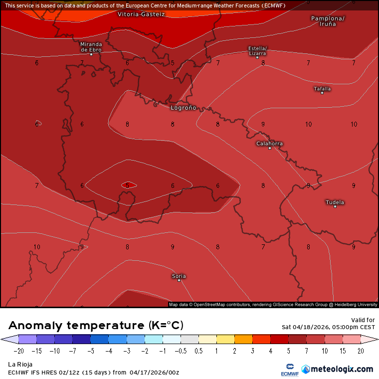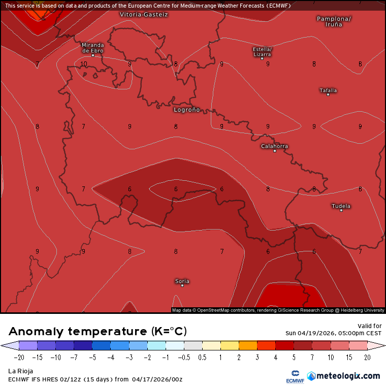 Las anomalías térmicas que muestran los modelos son claras: valores muy por encima de lo normal para la época, con +6/+10ºC de lo que toca.