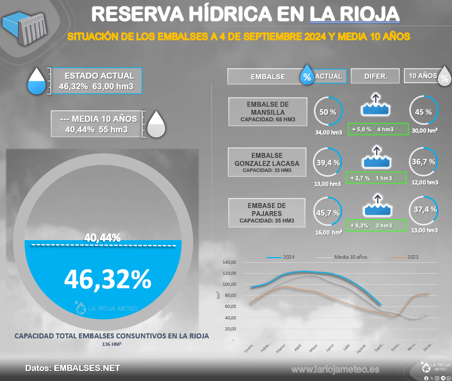 Nos acercamos al final del verano con los embalses en La Rioja un 5,9% por encima de la media de…