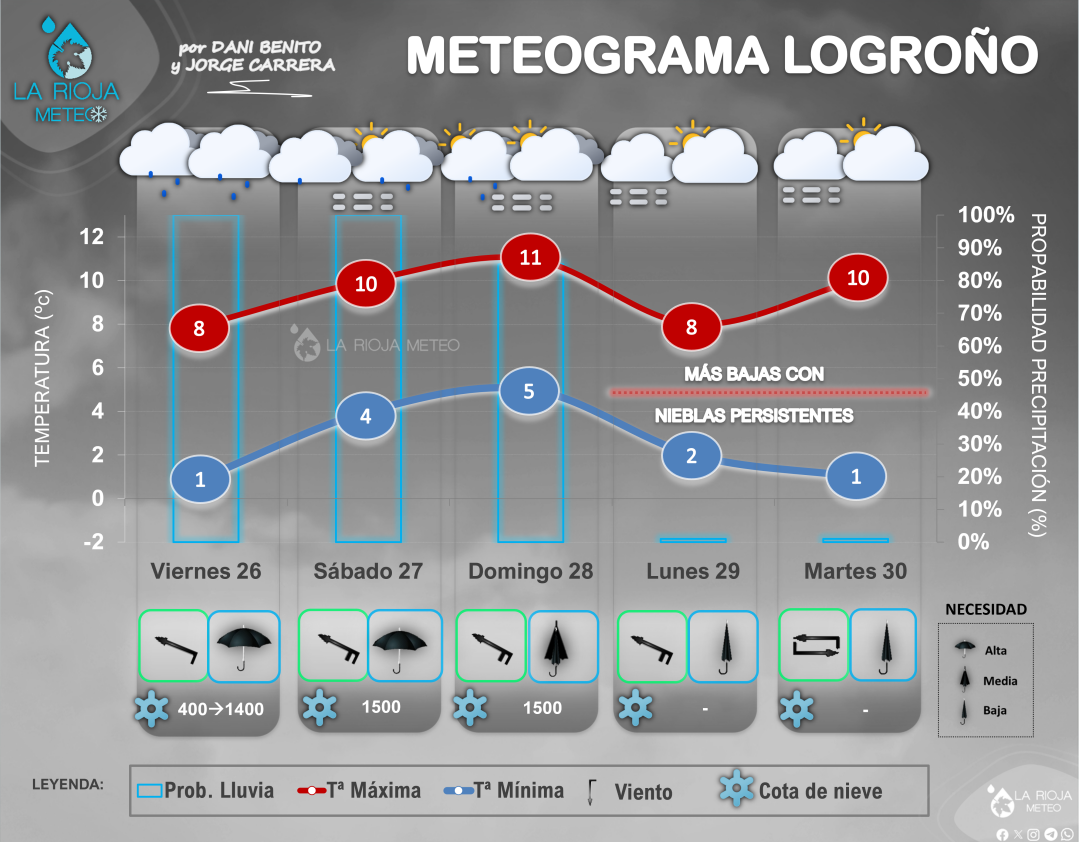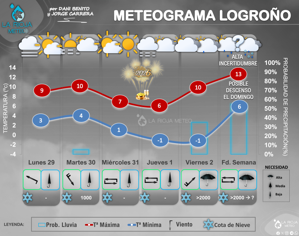 Nieblas primero, descenso térmico para despedir el año e incertidumbre al final de semana en La Rioja